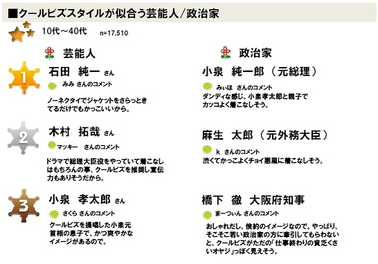 クールビズスタイルが似合う芸能人/政治家ランキング