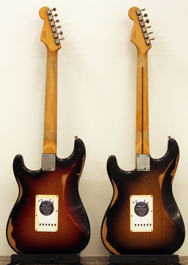 新たに登場したROAD WORNシリーズ。左が’60s Stratocaster、右が’50s StratocasterFender。