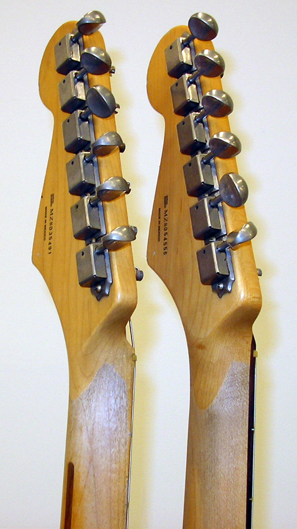 ROAD WORN ’60s Stratocasterと’50s Stratocasterのヘッド。