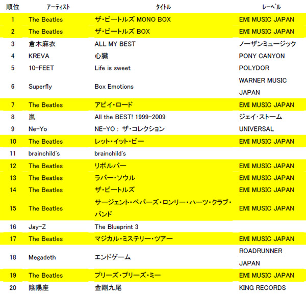 「ザ・ビートルズ・ボックスセット、タワーレコードで1、2フィニッシュ」ニュースに戻る