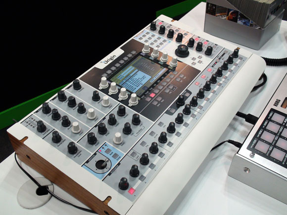 フックアップのブースでは、Arturia社のハードウェアシンセOriginが展示されている。ソフトシンセのminimoog V2.0、CS-80 V2.0で知られるArturia初のハードウェアシンセ。2008年に欧州で発売されており、日本国内での流通を心待ちにしていた人も多いことだろう。