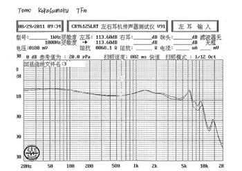 | ▲ROOTH製のカスタムIEMに必ず付属して来る周波数特性のグラフ。非常に素直な曲線で、バランスのいい特性が見て取れる。 |