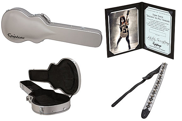 キッスのトミー・セイヤー本人のデザインにより完成したこのギターは、人目を引くシルバー・フレイク・フィニッシュの他、Gibson USA 498Tピックアップ、Grover Deluxeチューナー、LockToneブリッジ/テイルピースなどを搭載。また、すべてのギターにはカスタム・シルバーのハードケース、トミー・セイヤー直筆サインがプリントされた認定書が付属。全世界で1000本限定にてリリース予定となっている。