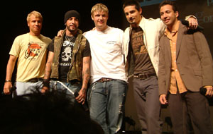 その後、いよいよメンバーが登場。「どうも~。コンニチハ!」と、真っ先に挨拶をしたのはA.J.。続いて「空港ではたくさんのファンの子たちが出迎えてくれてうれしかったよ。日本のファンは、世界中のファンの中でもベストと言えるんじゃないかな」(ブライアン)と、メンバーはまず、熱狂的な日本のファンをリスペクト。