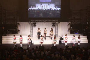 この日、登場したのは、中村繪里子(天草春香役)、若林直美(秋月律子役)、たかはし智秋(三浦あずさ役)、今井麻美(如月千早役)、平田宏美(菊地真役)、釘宮理恵(水瀬伊織役)、仁後真耶子(高槻やよい役)、下田麻美(双海亜美/真美役)、長谷川明子(星井美希役)、滝田樹里(音無小鳥役)の10名。