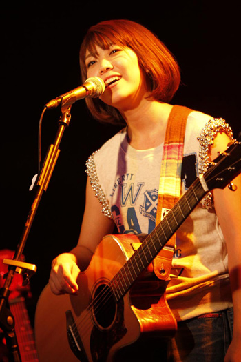 さて、初挑戦タイムへ。ギターを持たずハンドマイクでの「Subway」。そして、彼女がBlogでも書いていた、ハタチになったらやってみたいことのひとつ「とりビ(とりあえずビール)」。ビールが運ばれ、会場のファンとともに乾杯。その後、企画・構成・制作:山崎あおいによる「ハタチ」の映像。10年後、20年後、また見たいと思う。<君と産業廃棄物>と歌う曲の完成形が気になる。