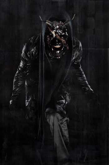 装いもスタイルも新たに、過激な再スタートを切った彼ら。公開されたそのヴィジュアルは、角の生えた恐ろしい仮面姿が魔王のようなVo.Mikaruをはじめ、何やら物々しい雰囲気。
