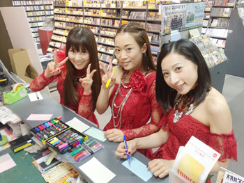 全国キャンペーン行脚2日目は大阪だ。現地のテレビ・ラジオ・雑誌などのメディア取材を受け、タワーレコード梅田丸ビル店に店頭挨拶へ。お店の入り口前ではKalafina特大パネルと「ひかりふる」の衣装展が行われており、店内ではKalafina「THE BEST “Red” / “Blue”」が展開されており、アルバムに収録曲には全て店員による懇切丁寧なコメントが展示されていた。