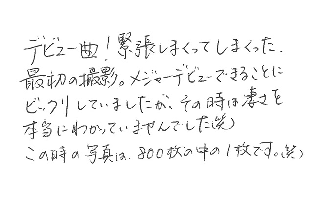 デビュー曲! 緊張しまくってしまくった最初の撮影。メジャーデビューできることにビックリしていましたが、その時は凄さを本当にわかっていませんでした(笑)