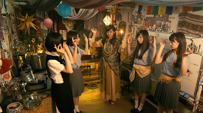ミュージックビデオの主役には堀未央奈が抜擢。「バレッタ」でセンターを務めた経験もある彼女だが、今作映像は転校生役の堀が日常のある日、アジフライを食べる謎のインド人の青年に出会い一目ぼれするというストーリーで、インド人との距離を縮めるべく学校にある“インド研究会”に所属する能條愛未にインド語やインド料理を習っていくというコメディータッチの仕上がりになっている。