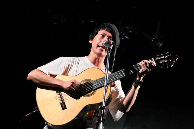 続いてのアーティストは、あっちにも行けるし、こっちにも行ける、全方位型シンガーソングライター 原田茶飯事。ソフトロックやMPBの洒落っ気、茶目っ気を感じさせながらも口から半分魂の出たようなステージングを披露した。
