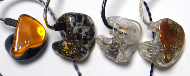 ▲左から、VISION EARS VE5、Noble Audio 5C、FitEar MH335DW、そしてears4U Live 3.5。全て5ドライバーモデル。