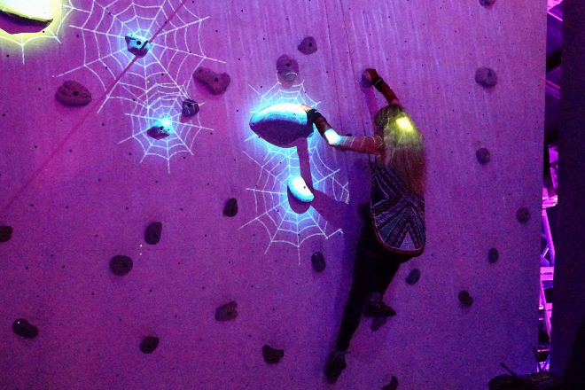 スポーツクライミングとソニーの技術を融合した新しい体験型アトラクション。 Moving Projectorで投映されるスパイダーマンと共に壁を登り、ゴールをめざす。上下左右に高速に駆動するプロジェクターで、任意の場所に映像を移動させ、その映像から音声が聞こえる体験を実現する技術となっている。