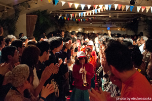 この日集まった幼稚園児~80歳の老人までの観客を楽しませる、尖ってはいるが懐の深いチャランポ流エンタテイメントはまだ終わらない。じっくり&しっとりと唄を楽しませた後は、フロアにひかれたレッドカーペットを大道芸さながら、ホーン隊を加えたメンバーを小春が引き連れて登場し、2部がスタート。チャラン・ポ・ランタンの魅力の一つである”ブンチャカ・ジプシーサウンド”を予感させる演出に観客はしょっぱなから狂喜乱舞した。