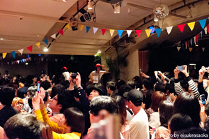 お祝いに次ぐお祝いで今後のブレイクが予感されるこのライヴの本編は終了。そしてトランス状態に入った観客からは当然のようにアツアツのアンコールが。