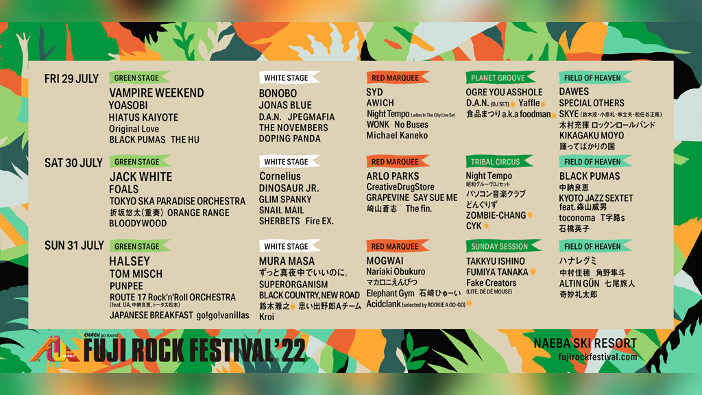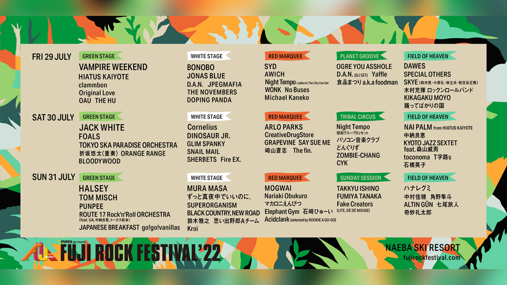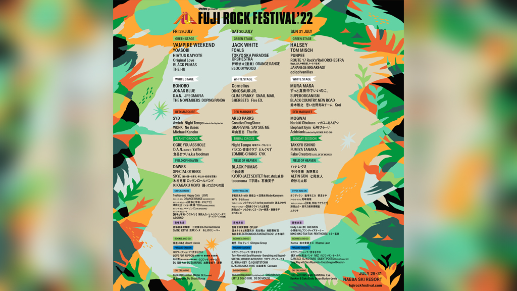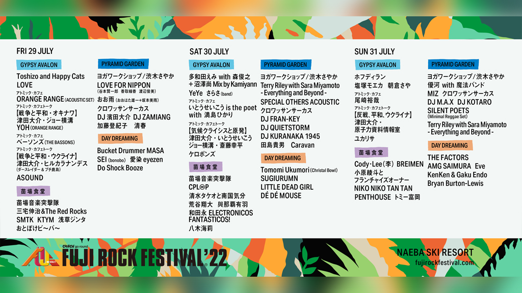 <フジロック’22>、YouTubeライブ配信アーティスト発表