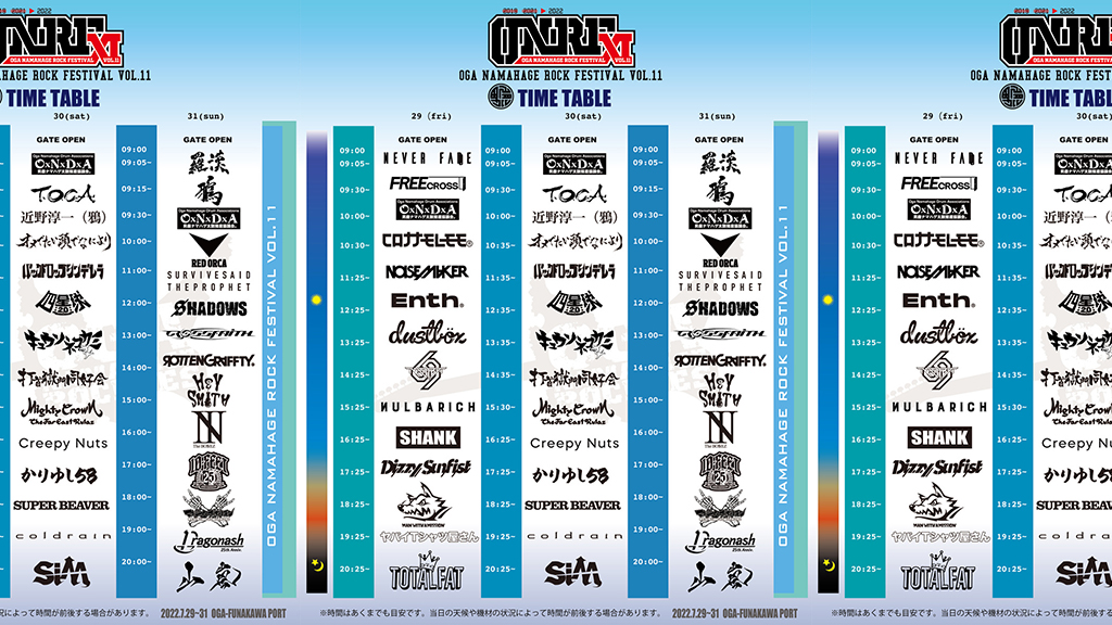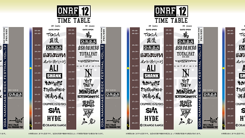 <男鹿フェス vol.13>タイムテーブル発表、初日トリは打首獄門同好会、2日目大トリは山嵐
