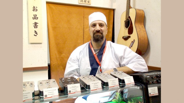 [2009楽器フェア速報]寿司板前の魚男が待ち構えるFISHMANブース