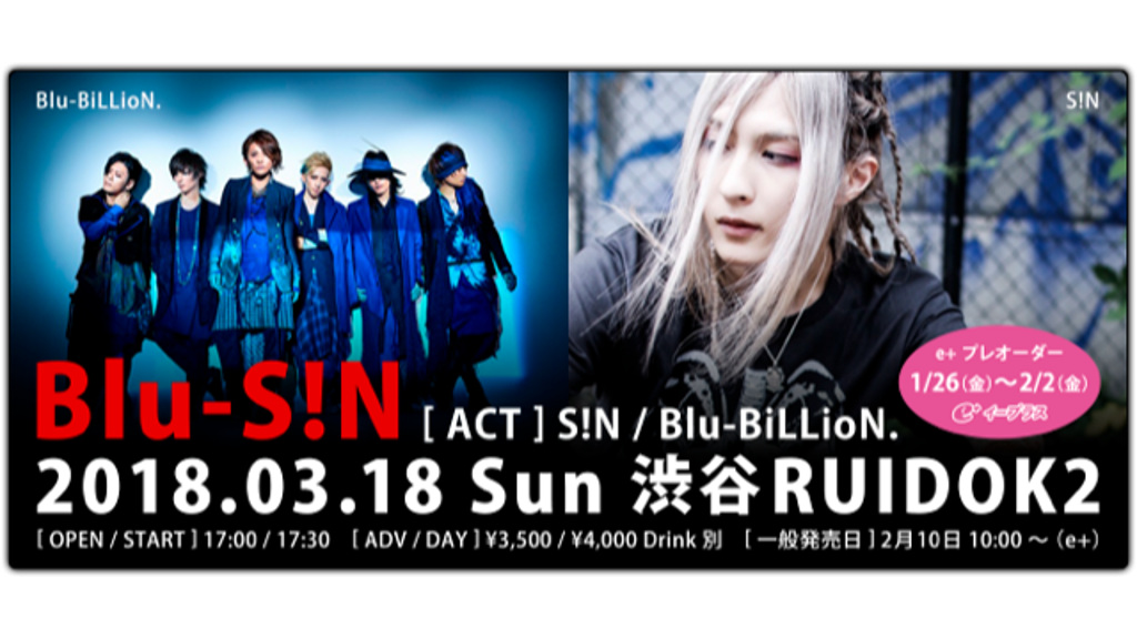 Blu-BiLLioN、S!Nとの対バンイベント<Blu-S!N>が3月に決定