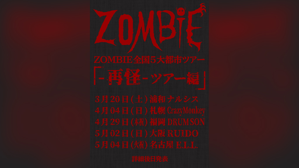 ZOMBIEが新シングルのリリースとフリーライブ、全国ツアー開催を発表