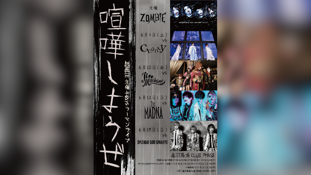 ZOMBIE、4daysツーマンライブ<喧嘩しようぜ>開催決定
