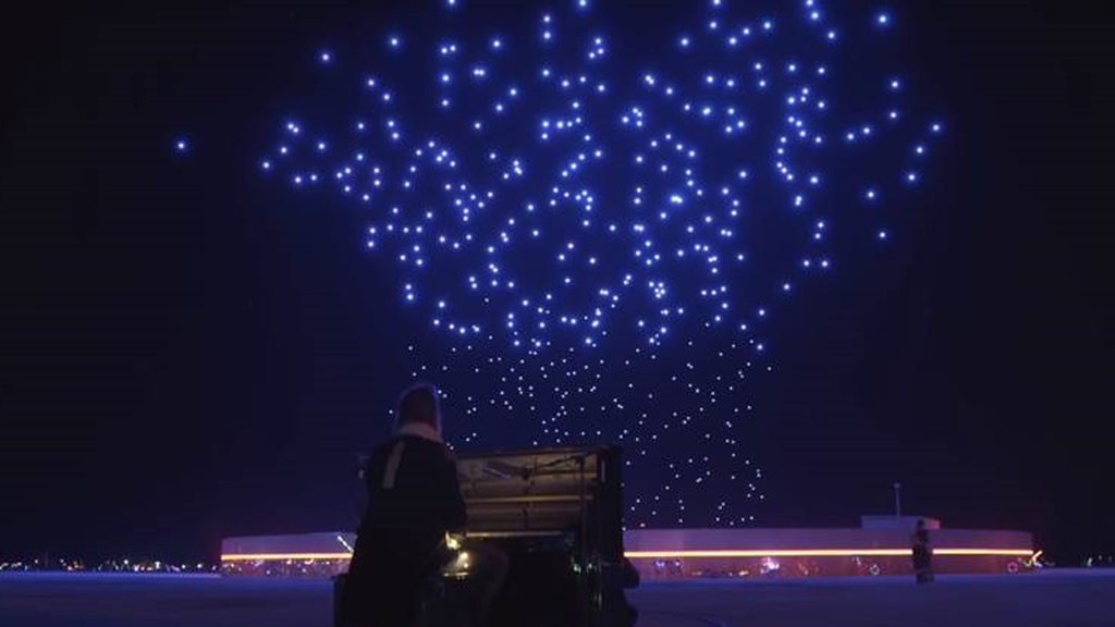 奇祭<バーニングマン>にて、蛍のように光る600台のドローン群とオランダ人ピアニストが共演