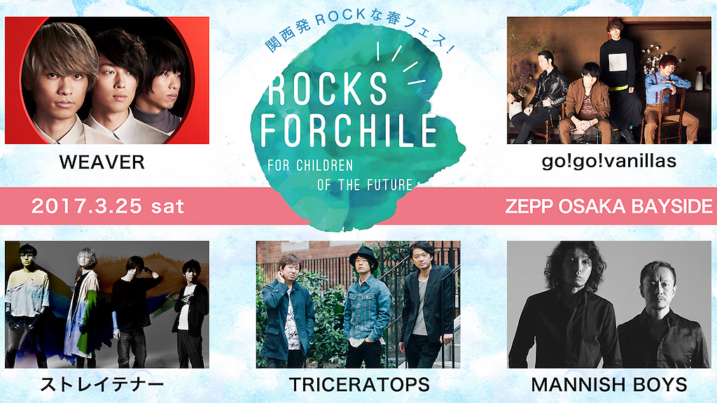 春フェス<Rocks ForChile>、第四弾発表にNO GENERATION GAPS、こども SKY WALKER(S)、福原美穂