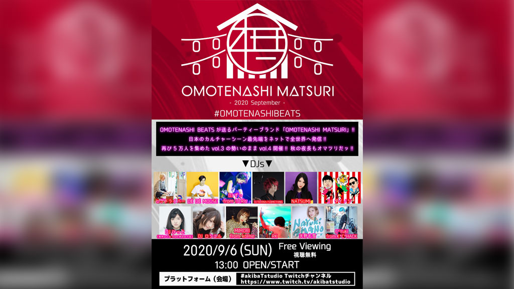 影山ヒロノブ、DJ KOO、神尾晋一郎ら10組が出演<OMOTENASHI MATSURI – 2020 July ->