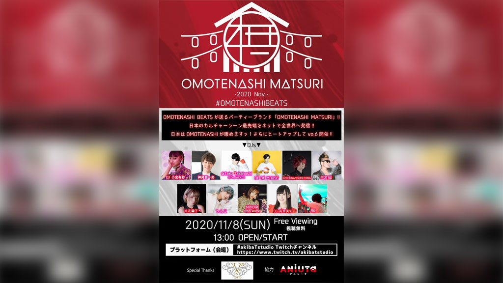 <OMOTENASHI MATSURI -2020 November->、☆Taku Takahashi、神尾晋一郎ら全出演者発表