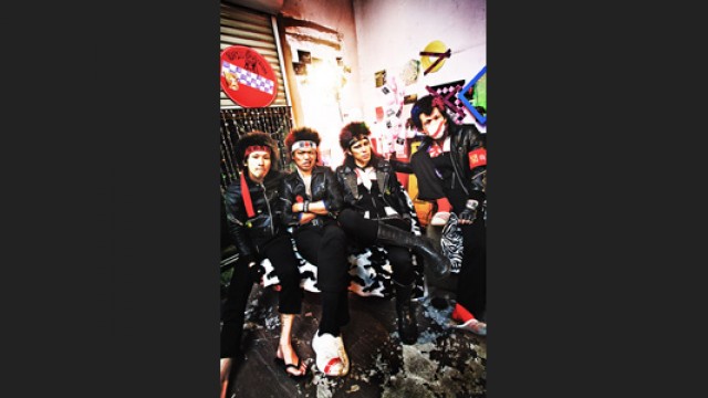 アラフォー4人衆、怒髪天が“春闘ライヴ”で労働党員バッヂを配布