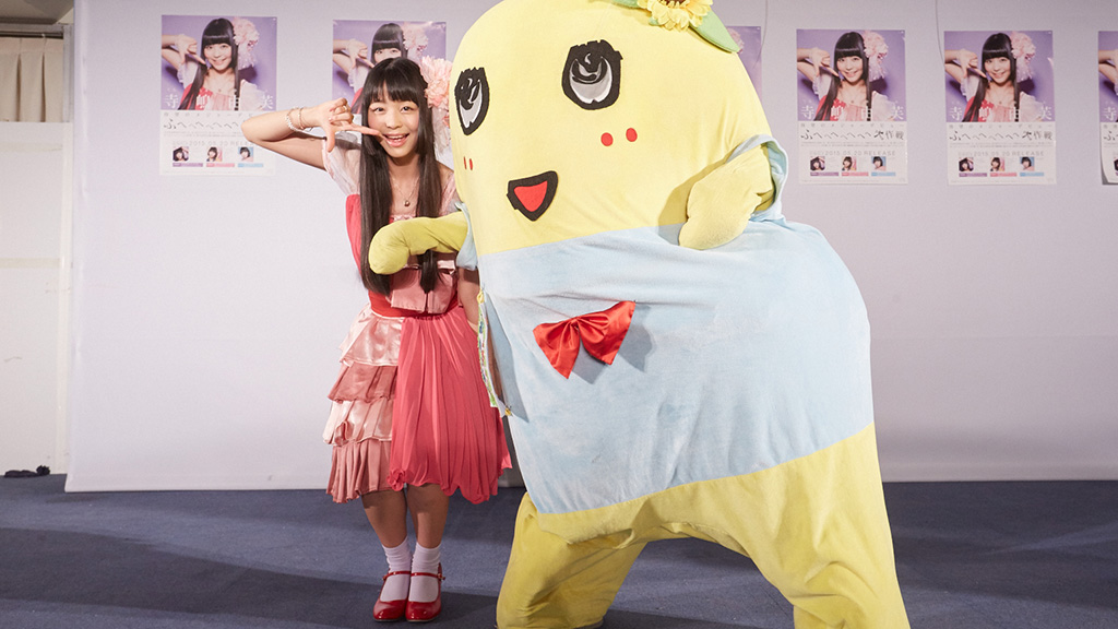 寺嶋由芙のデビューインストアライブに“お友だち”ふなっしー駆けつける