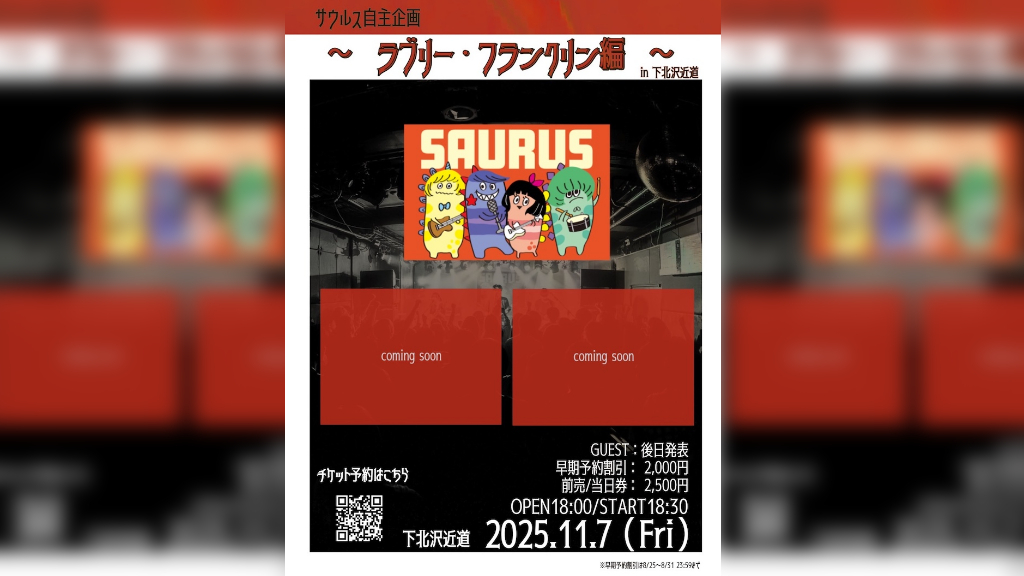 サウルスは新曲を順次リリース予定で、<TOKYO CALLING 2025>などサーキット出演やライブも続々決まっている。