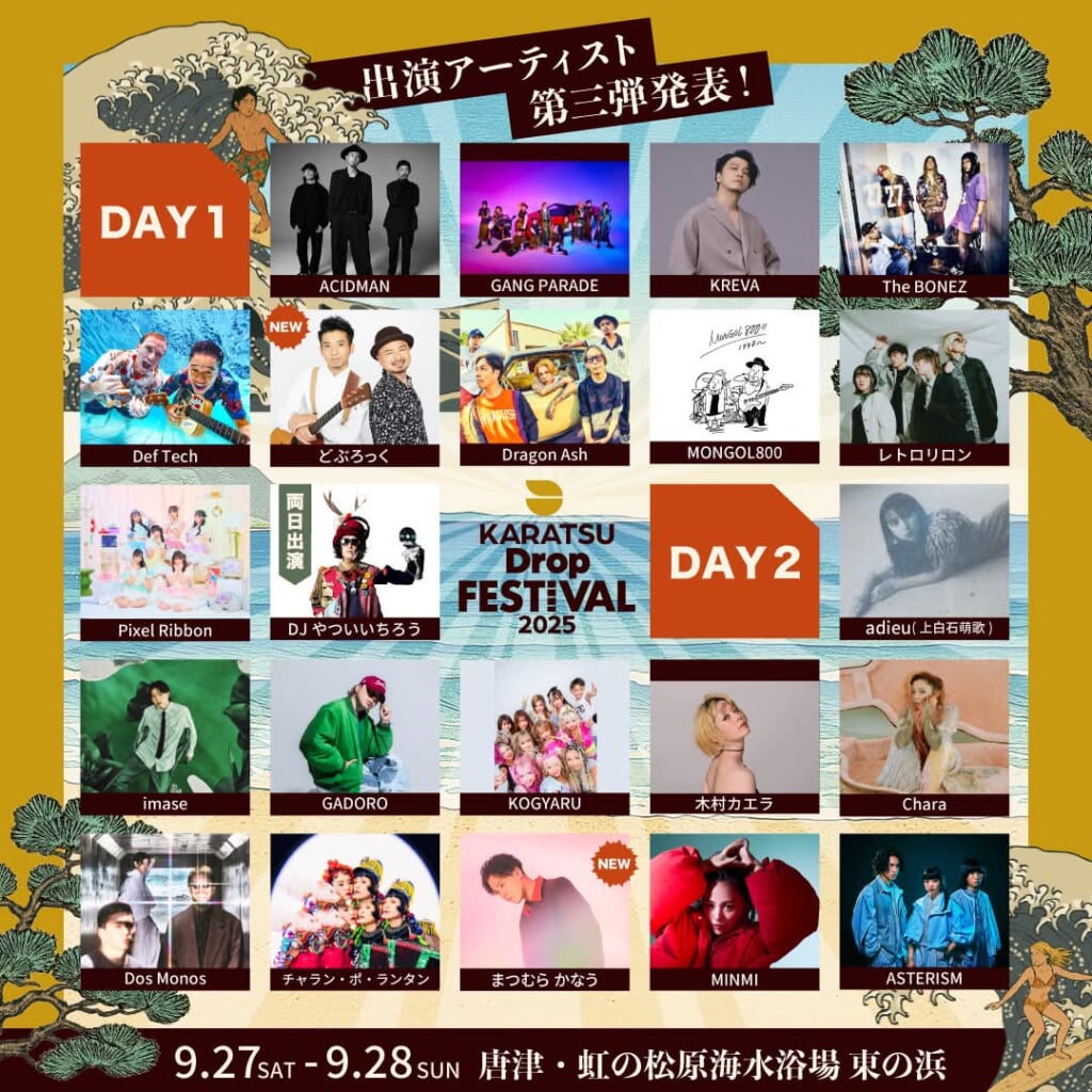<Karatsu Drop Festival 2025>が9月27日および28日の2日間、佐賀県唐津市・虹の松原海水浴場 東の浜で初開催される。同フェスの追加出演アーティストが発表となった。