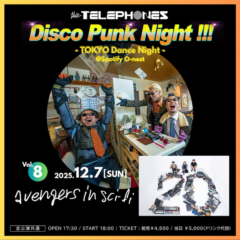 the telephonesが、恒例の対バンイベント<Disco Punk Night!!!>を2025年も開催することを発表した。