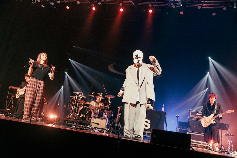 「DOGLAND」「DALMATIAN」「メリバ」と、DeuとIto(Vo, G)によるツインボーカルの鉄壁ぶりを見せつけていく。Deuが「5カ月ぶりのライブです。ご心配おかけしました」と口にするとフロアから「おかえり!」という声が上がった。「帰ってこられる場所がこうやって保存されていることが本当にありがたいことだと思ってます。待っててくれるのはPEOPLE 1が作る作品が好きだからだと思うんです。これからの僕は強いので、どうか作る作品に付いてきてくれると嬉しいです」と言うと拍手が巻き起こり、その拍手は鳴り止まなかった。ステージ上の面々はその温かさを噛みしめるような表情を浮かべた。