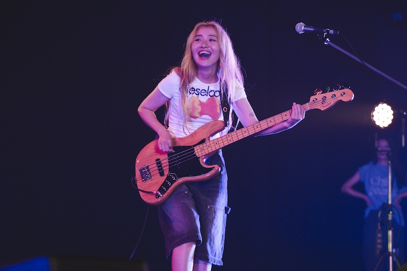 2番手はChilli Beans.。Maika(B, Vo)がオーディエンスを見つめながら「みんな温かい(笑)。PEOPLE 1のライブ超かっこよかった。みんな待ち望んでたんじゃない?」と言うと、YESを示す大きな歓声が上がった。Moto(Vo, G)が「(イベント名が)UPDATEじゃないですか? 未来があるって言われてるみたいで安心した」と吐露した後、賑やかなホイッスル音からスタートする軽快なサマーチューン「pineapple!」へ。Motoは楽しそうに飛び跳ねながら歌い、自由度を増大させていく。Lily(G, Vo)のシャープなギターリフが冴えるVaundyとの共作曲「lemonade」は、サビの〈いやいやいやいやいや〉で場内が一体となった。
