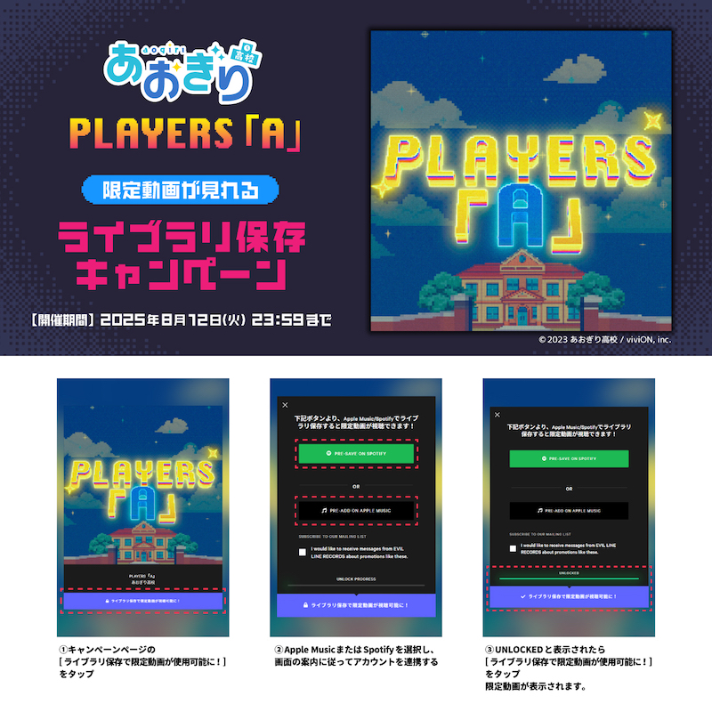 さらに、Apple Music/Spotifyユーザーを対象にキャンペーンURLからライブラリ保存を行うと、ここでしか見られない限定動画が視聴できるキャンペーンの開催も決定。リリース日より2週間限定、8月12日23時59分までの開催となっている。