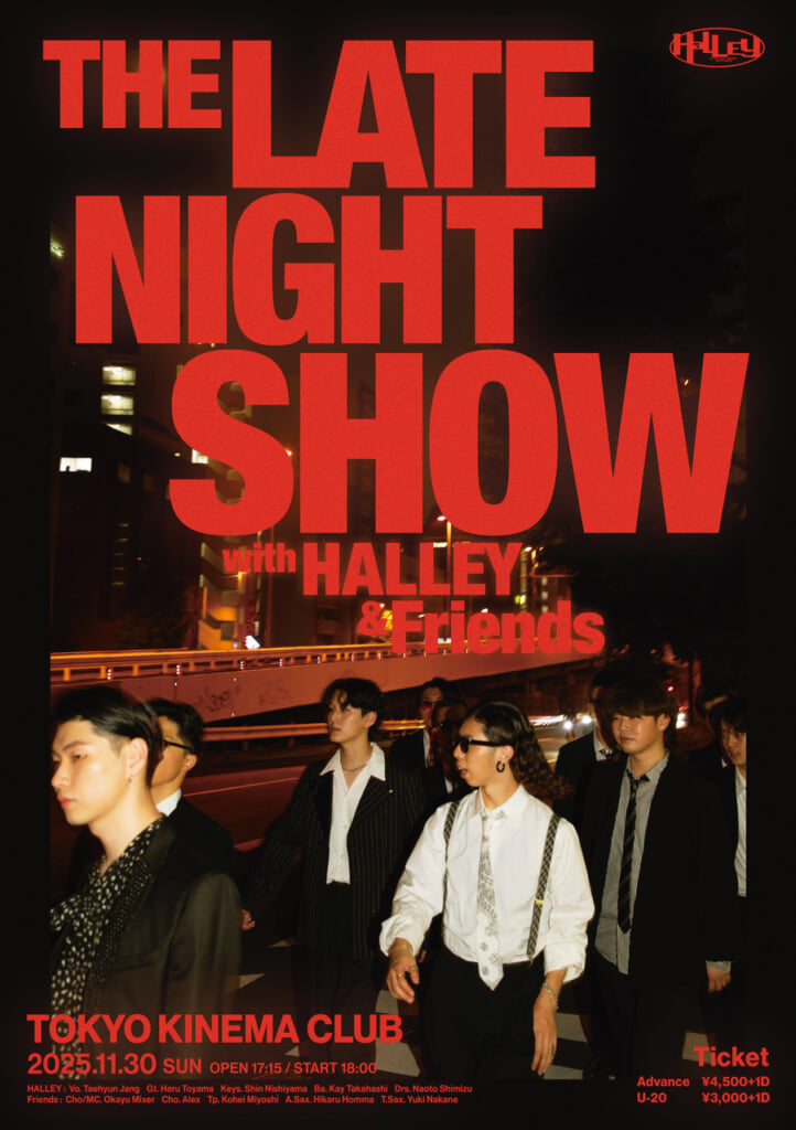 R&BバンドHALLEYが11月30日、東京・キネマ倶楽部でワンマンライブ<The Late Night Show with HALLEY & Friends>を開催することを発表した。
