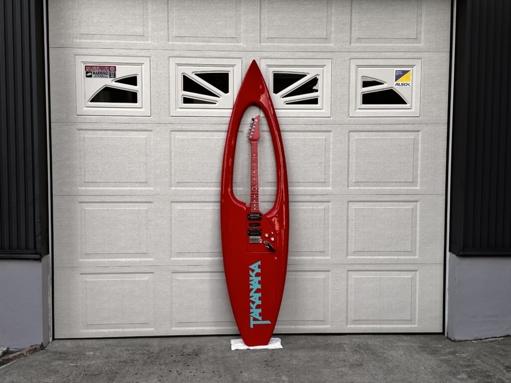 世にある奇天烈なギターの中でもトップクラスに突き抜けているものに、本物のサーフボードをくり抜いてギターにしちゃったという高中正義のサーフボードギターがありますが、これをコピーしちゃうというというのは常軌を逸した暴挙。でもきちんと出来上がってしまっているところを見ると、一周回って芸術家の所業。凄すぎて言葉も出ないわ。驚愕。下記の写真が本人の現物写真です。人間に不可能なんてないのね…。(BARKS 烏丸哲也)