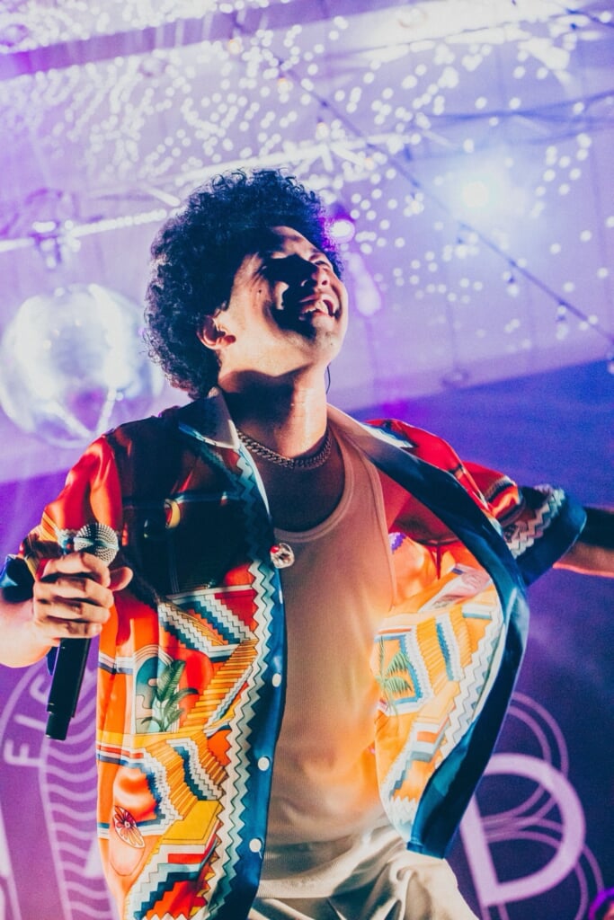 「『あったかい涙』は、ずっと野外のこういう景色をイメージしながら制作した曲で、今日できて嬉しく思います。」と感謝を述べつつ、続けて、「バラードをやった後は、またちょっと一気にお祭り騒ぎをしたい」と真行寺が話すと、ライブの後半戦に突入。