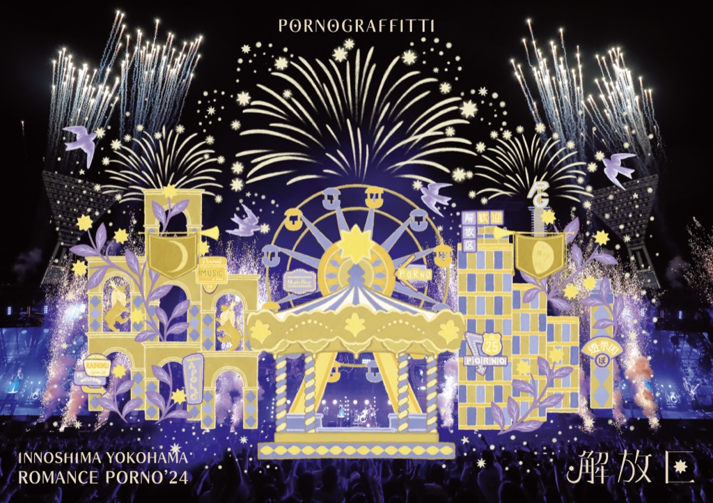 ポルノグラフィティが、メジャーデビュー25周年を記念して開催した<因島・横浜ロマンスポルノ’24 〜解放区〜>の映像化作品を9月3日にリリースする。このたびパッケージデザインと特典内容が公開された。