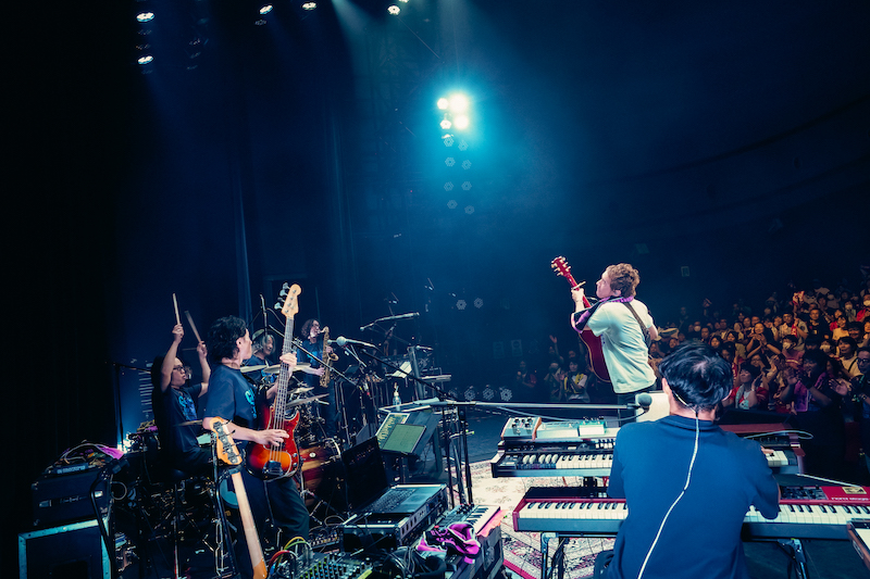 この日披露された楽曲はアンコールを含めて全21曲。数ある楽曲の中から選りすぐりで披露された楽曲はどれも珠玉のものばかり。この日1曲目に彼が選んだのは「この街で」。2005年にリリースされたものを令和版にアレンジし、時代の変化と生きる希望を柔らかく描きだした。その後も「スーパーオーディナリー」「スタートライン~新しい風」などの代表曲に加え、今年5月にリリースしたばかりの最新EP『地平線』から、43枚目のシングルであり表題曲の「地平線」など新旧の織り交ぜた楽曲陣を披露。共に歩んできたファンやそばにいる人たちへ、柔らかくも芯の強い歌声、心温まる詞世界で魅了していった。