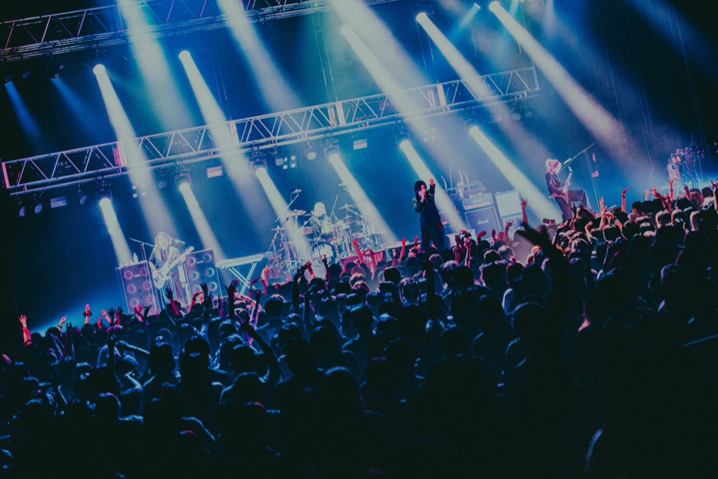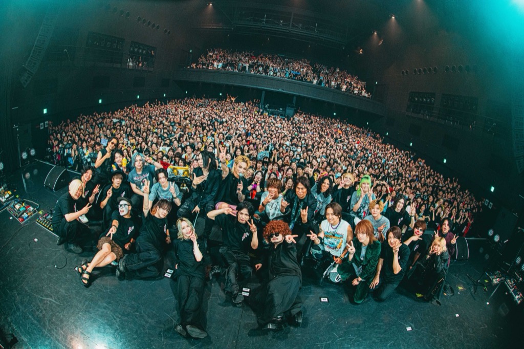 さらに、SORAが「せっかく来てもらったので、INORANさんにまつわるエトセトラを……」と提案し、8人にINORANが加わってLUNA SEAの初期楽曲「BLUE TRANSPARENCY 限りなく透明に近いブルー」へ。ミヤ&Miyakoのリフに重ねてINORANがクリアなアルペジオを爪弾くと、一気にLUNA SEAサウンドの色が加わる。自分らしさを交えて歌う千秋と、ライヴバージョンを盛り込んで世代感をアピールする逹瑯の対比も面白い。ステージ上にもフロアにも笑顔が広がるエンディングとなった。
