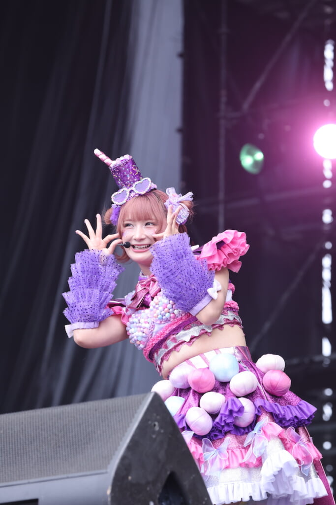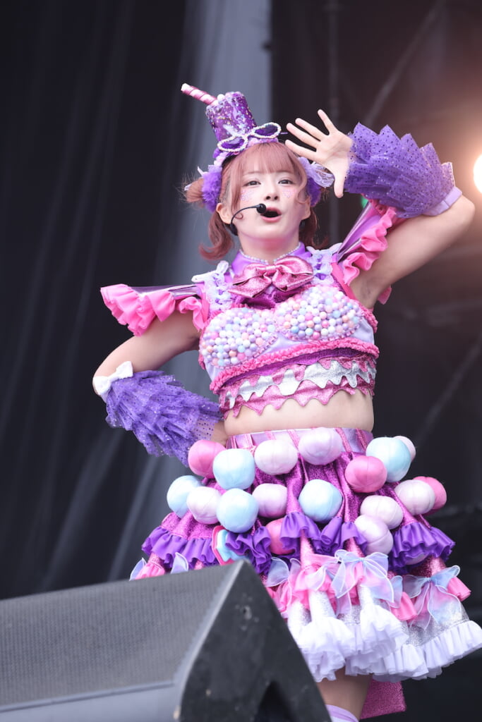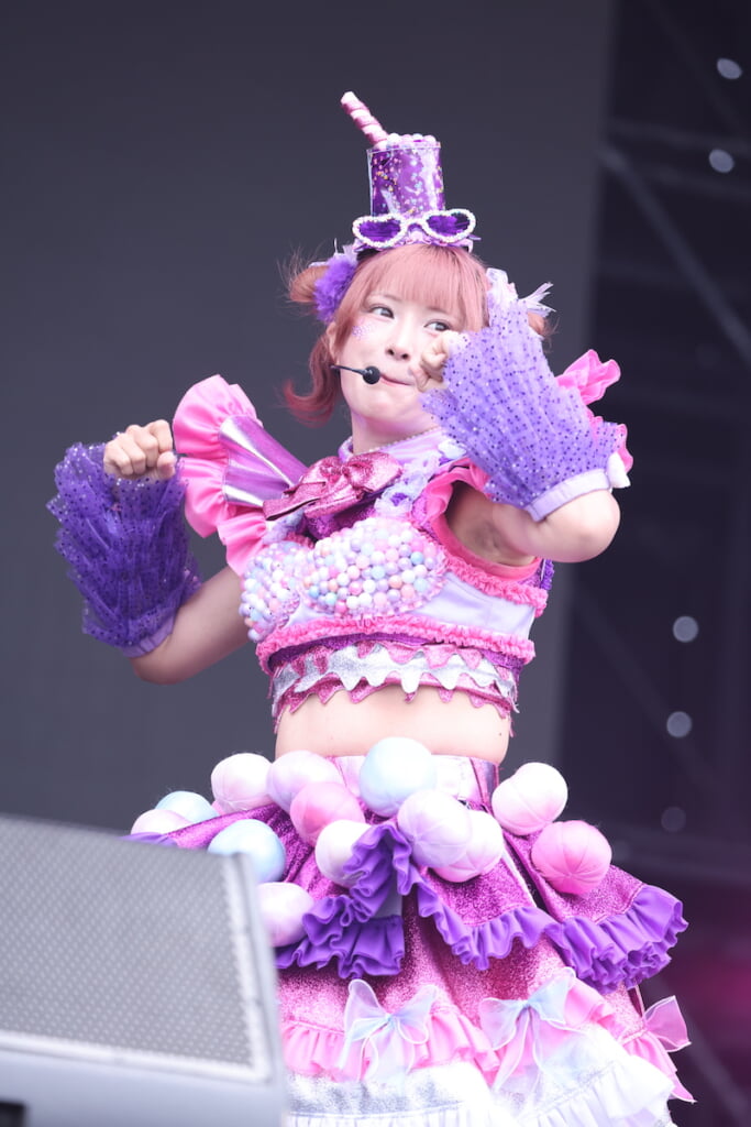 そして、二体の着ぐるみキャラクターが加わった「歯ラ歯ラ」がラストを飾った。パラパラを彷彿とさせる振り付けが素早くて切れ味抜群。虫歯菌が恐れをなして逃げ出すのが目に浮かぶ情熱的なパフォーマンスだった。歌い終えた後、「最後まで盛り上がってくれてありがとうございます! 来年もステージに立てるように頑張るので応援よろしくお願いします。熱中症に気をつけながら最後まで楽しんで帰ってください!」と挨拶。ステージを後にしたしなこを大きな拍手が見送った。