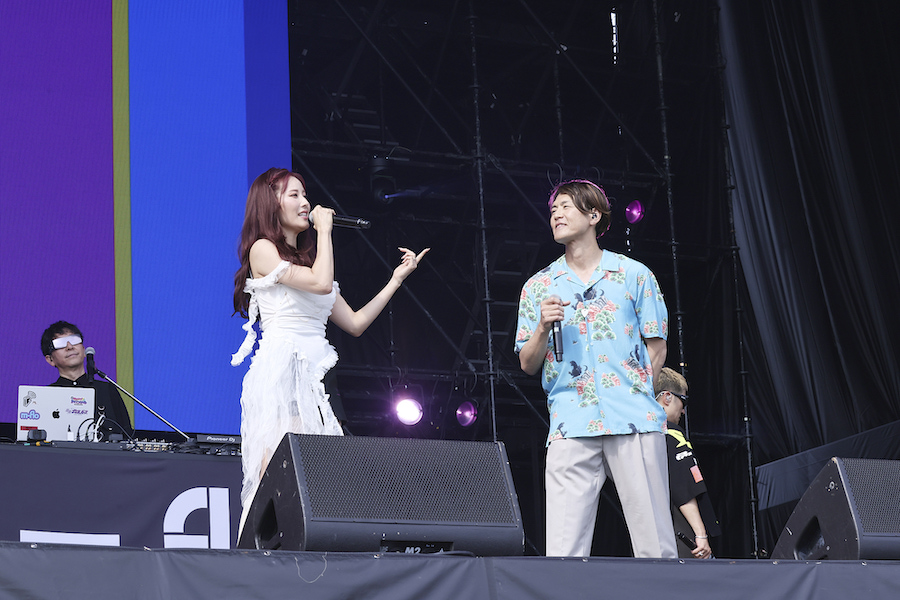 ここで白いシャツをラフにはおって笑顔満面で登場したのは、現在はTAIL名義で活動する向井太一だ。挨拶代わりに「tell me tell me」をLISAとデュエット、さらに☆Takuと一緒に作ったオリジナル曲「break up」も披露する、まさにクラブっぽい自由なノリをフェスに持ち込むのがm-floスタイル。オーディエンスも大歓声で大歓迎だ。