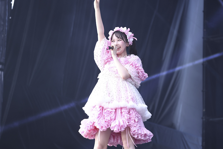 午後4時を過ぎの国営ひたち海浜公園は、強い西陽が照りつけるが、時折吹く風に心地よさを感じながら、数万人とも思える観客が彼女たちの登場を静かに待つ中、3周年アニバーサリー仕様の「Overture」が流れる。すると、ここまでの穏やかな空気感が嘘のような大歓声が湧き上がる。「Overture」に合わせてクラップが鳴り響き、そして“オイ!オイ!”の大コールが発生。それを合図にしたかのように、メンバーが登場すると、さらなる大歓声が上がった。