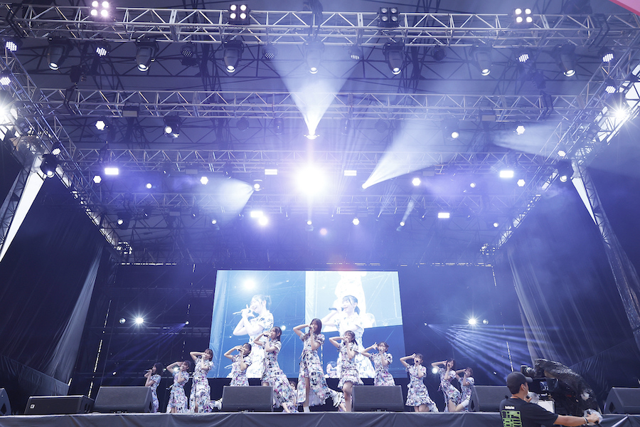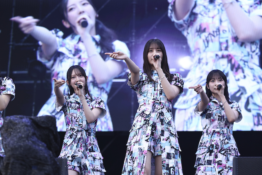 松田の「LuckyFes、楽しもう!」から「海風とわがまま」へとつなぐと、観客のギアも一段高く入ることに。小坂菜緒をセンターに据えた日向坂46は、大人数で所狭しと息の合ったダンスを見せていく。夏にぴったりなこの曲で、会場を見事に“日向坂色”に染め上げた。