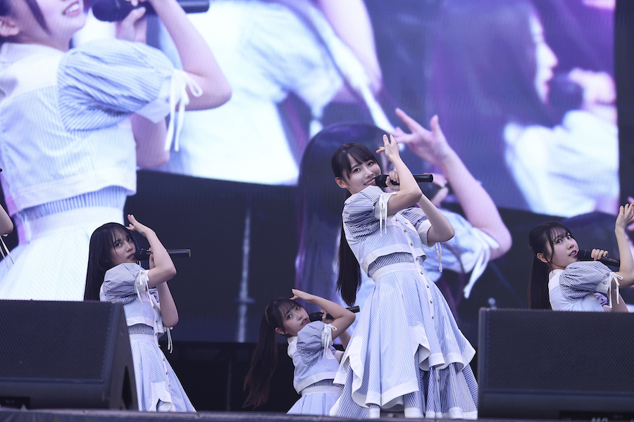 キャプテンの髙橋未来虹が「新しくメンバーを加えて、フルメンバーでのフェス出演は今日が初めて。パワーアップした日向坂46として、全力以上のパフォーマンスをお届けします!」と力強く宣言すると、続いては五期生が「ジャーマンアイリス」をパフォーマンス。初々しさの中にも芯のある表情を浮かべながら、五期生は初めてのフェスのステージを堪能した。