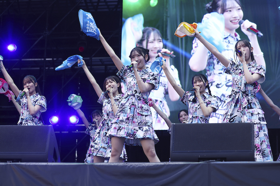 続いては、先輩メンバーたちによる「愛はこっちのものだ」で会場は再びヒートアップ。サビでは手にしたタオルを頭上で回し、オーディエンスとの一体感を高めていく。曲後半のブレイクパートでは、髙橋が「全員、回せーっ!」と絶叫する場面もあり、ライブは徐々にクライマックスへと近づいていった。
