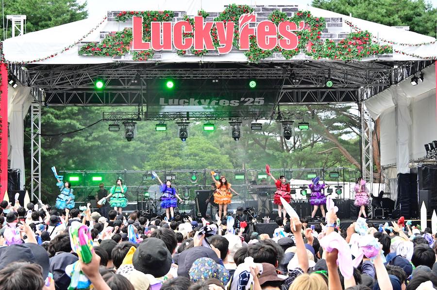 この日、CANDY TUNEは生バンドとともに、可憐さと力強さを兼ね備えたステージを展開。甘さ、爽快さ、そして野外フェスならではのエネルギーを融合させたパフォーマンスは、観客に鮮烈な印象を残し、<LuckyFes 2025>の景色を華やかに彩った。